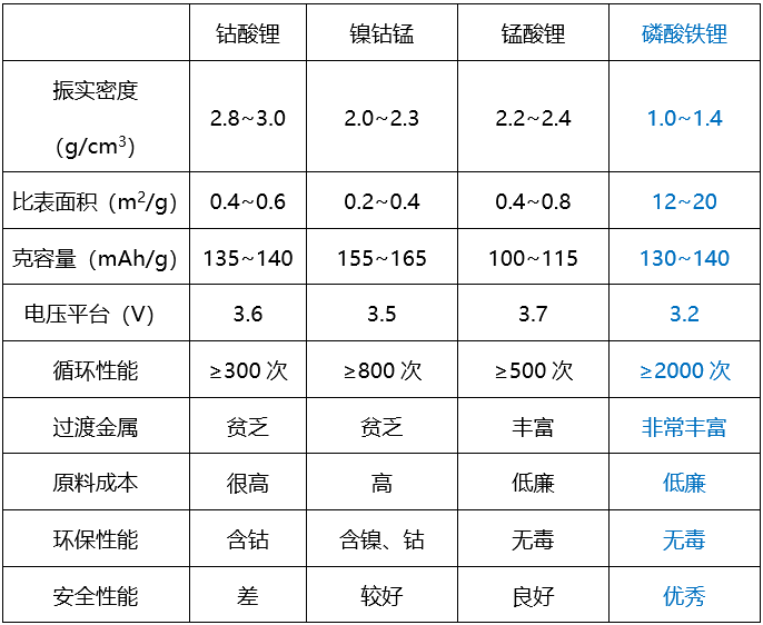 幾種正極材料比較