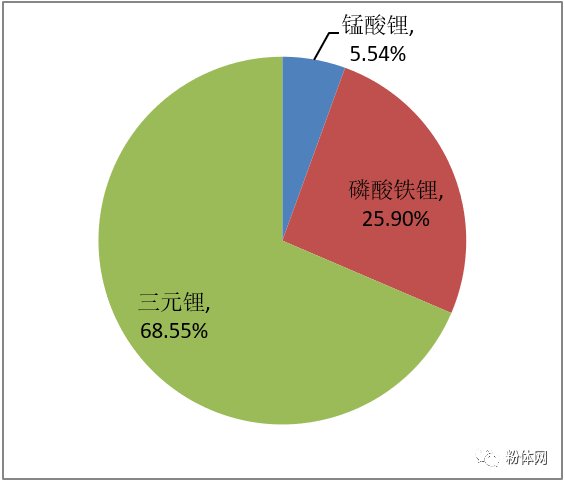 下面是我國2017年不同種類的動力電池裝機(jī)量的分布。