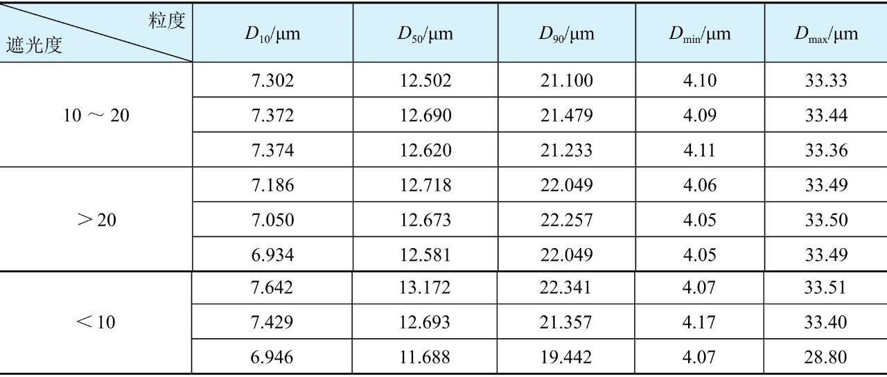 從表中可以看出,設備的選擇對測試結果的影響也很大。建議行業內盡量統一粒度測試的原理和所用設備的精度,以保證測試結果的準確度和可比性。