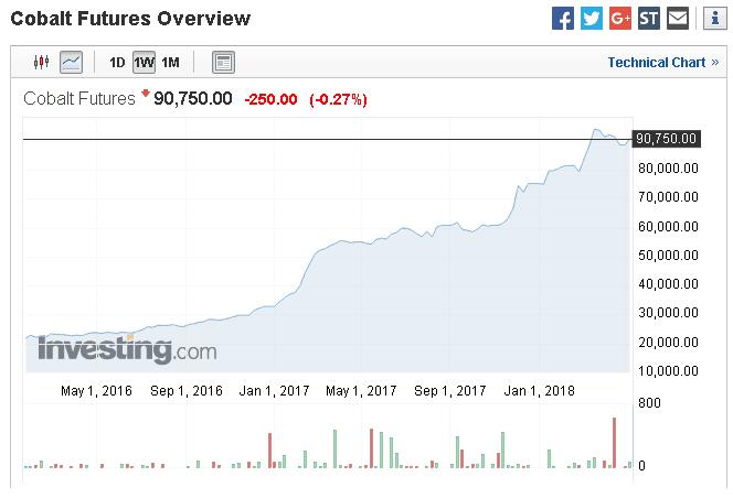 中國粉體網(wǎng)訊 自2016年起,一陣“妖鈷鋰風(fēng)”席卷了市場,成為投資者關(guān)注的焦點。從價格來看,國際鋰價格在兩年時間里升高了一倍,而鈷期貨的價格則翻了4倍有余。