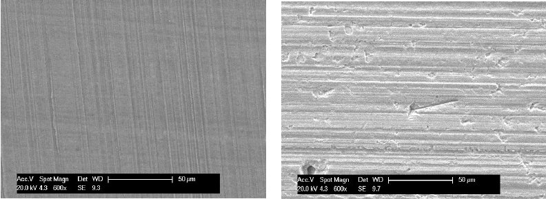 Ra=0.4um的金屬(左)和氧化鋯(右)的電子顯微鏡圖