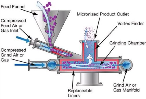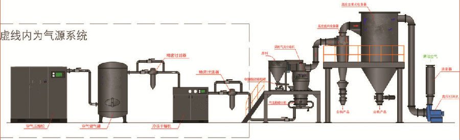 設備優點:生產過程連續,產能大,自動化程度高;由它加工的產品粒徑小、粒度分布窄;純度高,特別適用于粉碎藥品等不允許被污染的物料;顆粒活性高,分散性好。