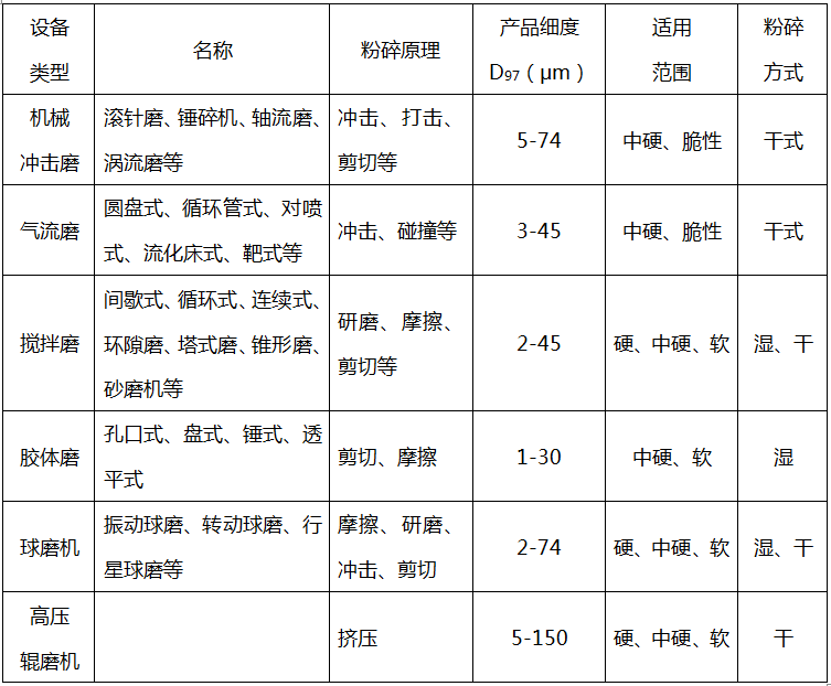 超細粉碎設備種類眾多,目前國內常用的超細粉碎設備主要有機械沖擊磨、氣流磨、攪拌磨、膠體磨、球磨機和高壓輥磨機等。