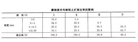 對某一種礦石,當其粒度越細小時,其比表面積越大。這樣礦石與溶液接觸的面積越大,即反應的面積增加了,在其他溶出條件相同時,溶出速率就會增加。另外礦石的細磨加工會使原來被雜質包裹的氧化鋁水合物暴露出來,增加了氧化鋁的溶出率。溶出三水鋁石型鋁土礦時,一般不要求磨得很細,有時破碎到16mm即可進行滲濾溶出。致密難溶的一水硬鋁石型礦石則要求細磨。然而過分的細磨使生產費用增加,又無助于進一步提高溶出速率,而且還可能使溶出赤泥變細,造成赤泥分離洗滌的困難。