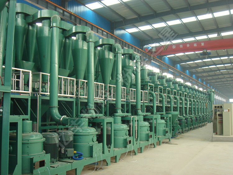 優化分級機的機械傳動,無故障運行,分級采用臥式分級輪,比立式分級輪切割精度準,分級效率高。我公司采用高速、 小分級輪,保證了分級精度,比國內采用大輪低轉速氣流磨精度大幅提高。