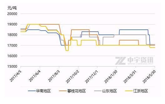 近期國內鈦白粉行情平穩運行,受青島舉辦峰會影響,聽聞山東某廠鈦白粉裝置停工,產量減少,目前庫存不足以支撐到裝置重啟,市場看漲心態復燃。雖然本周漯河興茂鈦業提高氯化法鈦白粉價格,但“我們不一樣”,硫酸法鈦白粉價格難漲,硫酸法金紅石型鈦白粉主流價格在16000-17000元/噸;銳鈦型鈦白粉主流價格在13500-14500元/噸。不過受環保因素影響,下游需求表現平平;4月份鈦白粉出口量環比減少。后市方面,國內需求不足;印度港口鬧罷工;淡季到來等利空制約下,除非鈦白粉從供給端大幅減少,否則難逃跌勢。(中國粉體網編輯整理/茜茜)