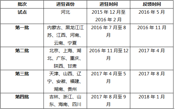 中央環保督察是黨的十八大以來生態文明建設的一項重要制度安排。2015年中央環保在河北開展試點;2017年12月第一輪中央環保督察完成全國31個省份全覆蓋;2018年將開展第一輪中央環保督察“回頭看”;2019年將開始第二輪中央環保督察。