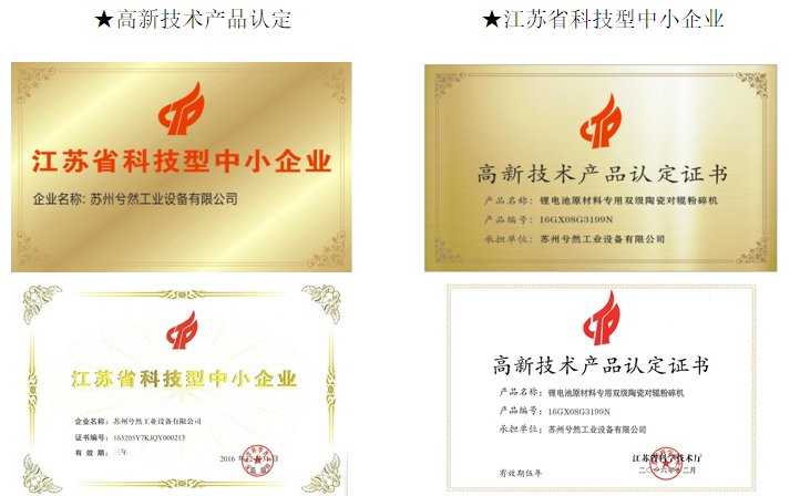 蘇州兮然工業設備有限公司坐落于—蘇州工業園區,是一家專業生產陶瓷對輥破碎機、超微石盤磨(經過對輥機粉碎粗磨出來的物料可達:1-3mm,再通過超微石盤磨細磨出來的物料可達:7um,完全達到Li電行業的要求)以及錐形真空干燥機(主要用于鋰電池正極材料一燒后、二燒前水洗工藝的預干燥)等設備的專業廠家。產品銷往全國各地,產品質量與性能均達到國內先進水平,深受用戶的歡迎和信賴。我司還配有專門實驗室,歡迎廣大客戶來我司進行實驗。