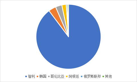2018年一季度我國碳酸鋰進口國TOP5(單位:噸)