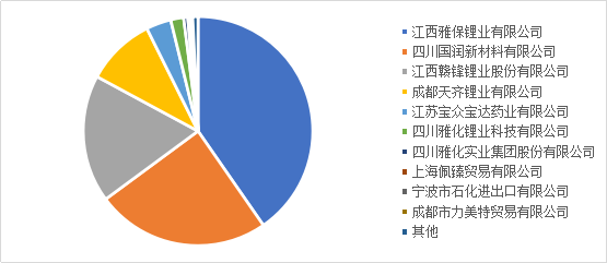 氫氧化鋰產(chǎn)品仍以出口為主,出口量達到6260噸,氫氧化鋰進口量約為932噸。我國氫氧化鋰產(chǎn)品出口情況顯示,TOP5企業(yè)占比達96%,TOP10企業(yè)占比達99.2%。