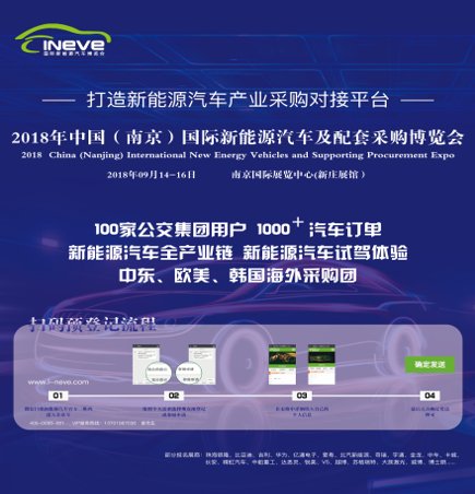 讓我們共同期待「INEVE 2018年9月14-16日南京新能源汽車博覽」帶來更多精彩!
