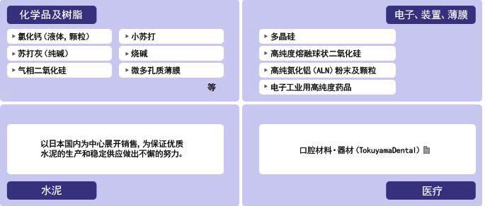 德山是主要基地設在日本的化工廠家。本公司以化學品、樹脂產品、電子相關產品為中心,以高度的技術為依托,生產和銷售各種化學產品。