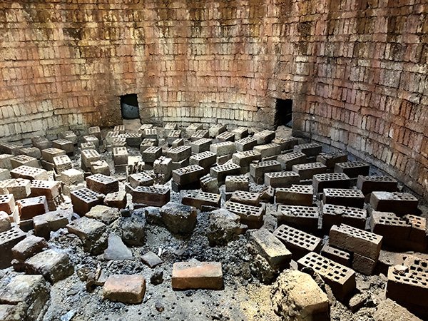 一會(huì)兒功夫,車輛下山再經(jīng)過煅燒車間時(shí),工人已不見蹤影,廠區(qū)9臺(tái)焙燒窯中,1臺(tái)冒著余溫,2臺(tái)還未出窯——這是剛剛還在生產(chǎn)的痕跡。