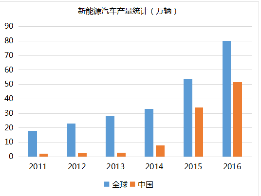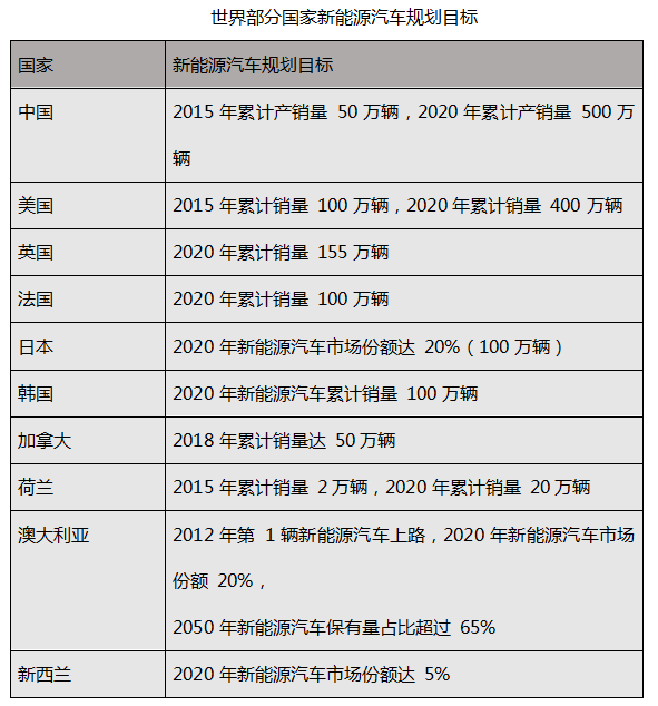 世界大部分國家對新能源汽車設(shè)定了規(guī)劃目標(biāo),預(yù)計(jì)到2020年全球新能源車銷量累計(jì)將超過1800萬輛,其中我國的目標(biāo)數(shù)量最大。