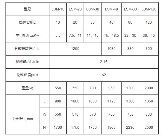 立式砂磨機技術參數: