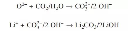 總堿量高意味著顆粒表面鋰殘渣較多,非常容易吸收空氣中的二氧化碳和水,發生如下反應: