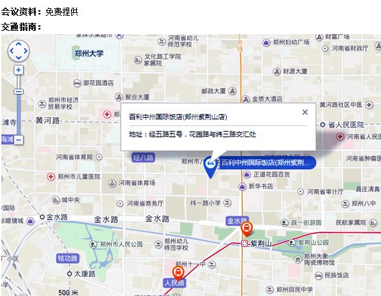 會議地點:鄭州百利中州國際飯店 地址:經五路五號,花園路與緯三路交匯處