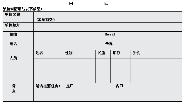 注:請于9月21日前將回執(可打印、復制)傳真、郵寄或發電子郵件到以下地址: