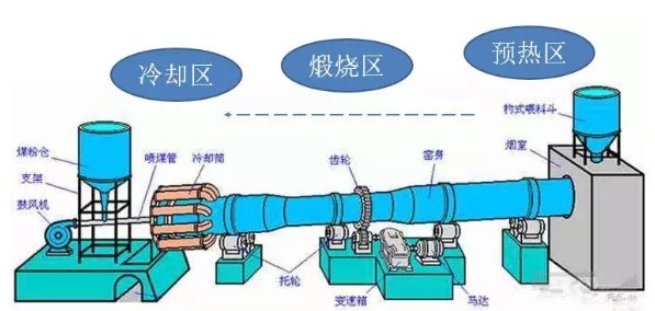 預熱區的基本化學反應包括,物料溫度預熱至900℃左右、蒸發物料中的水分、鈣表面部分開始分解、碳酸鎂完全分解等。