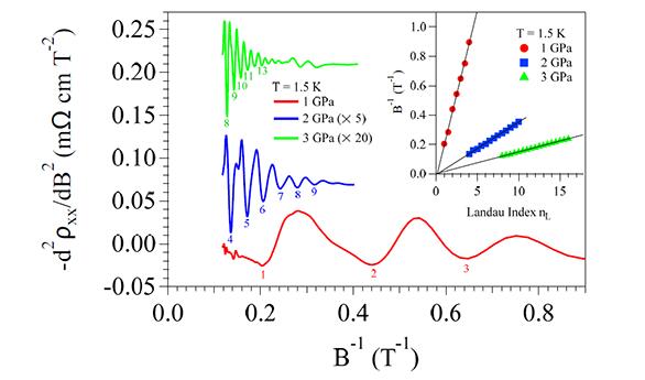 圖3. 黑磷單晶在A17相不同壓力下的1.5K量子震蕩數(shù)據(jù)。