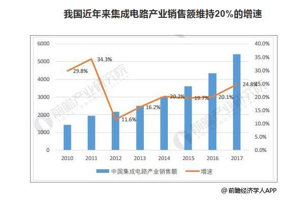 我國近年來集成電路產(chǎn)業(yè)銷售額維持20%的增速