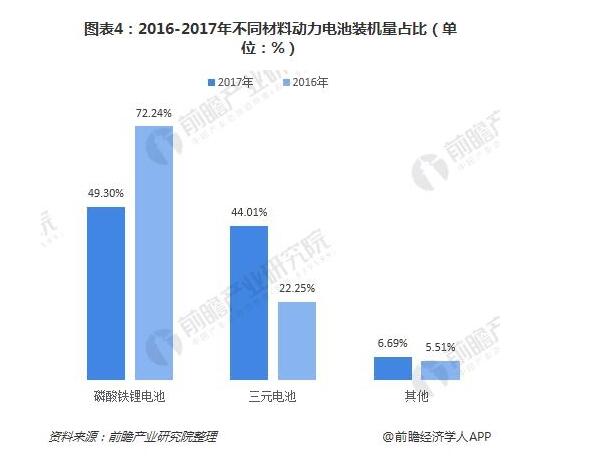 目前,國際主流動力電池企業主要電池類型基本為磷酸鐵鋰和三元鋰電池。在中國市場,磷酸鐵鋰和三元電池同樣是車用動力電池的主流,2016年和2017年裝機占市場總量的94.5%和93.3%。