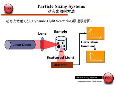 工作原理:當(dāng)光束通過(guò)產(chǎn)生布朗運(yùn)動(dòng)的顆粒時(shí),會(huì)散射出一定頻移的散射光,散射光在空間某點(diǎn)形成干涉,該點(diǎn)光強(qiáng)的時(shí)間相關(guān)函數(shù)的衰減與顆粒粒度大小有一一對(duì)應(yīng)的關(guān)系。通過(guò)檢測(cè)散射光的光強(qiáng)隨時(shí)間變化,并進(jìn)行相關(guān)運(yùn)算可以得出顆粒粒度大小。