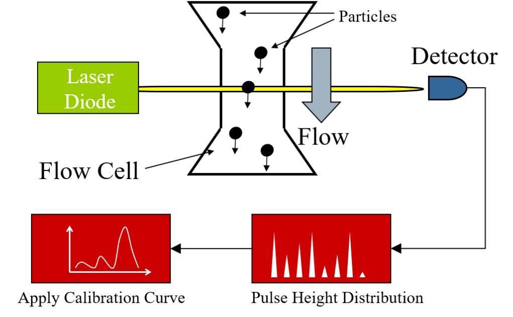 工作原理:當(dāng)顆粒通過(guò)光束時(shí),部分光被擋住,引起光電檢測(cè)器信號(hào)變化,該信號(hào)脈沖的個(gè)數(shù)對(duì)應(yīng)于顆粒的個(gè)數(shù),而脈沖的面積對(duì)應(yīng)于顆粒的大小。樣品需稀釋至極低濃度,測(cè)量結(jié)果取決于校準(zhǔn)。