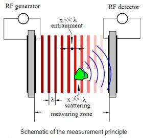 工作原理:超聲波發(fā)生端發(fā)出一定頻率和強(qiáng)度的超聲波,經(jīng)過(guò)測(cè)試區(qū)域,到達(dá)信號(hào)接收端。當(dāng)顆粒通過(guò)測(cè)試區(qū)域時(shí),由于不同大小的顆粒對(duì)聲波的吸收程度不同,在接收端上得到的聲波的衰減程度也就不一樣,根據(jù)顆粒大小同超聲波強(qiáng)度衰減之間的關(guān)系,得到顆粒的粒度分布,同時(shí)還可測(cè)得體系的固含量。