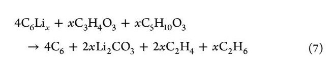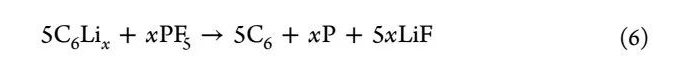 人造石墨(AG)+LiPF6 (EC/DEC)電解液同樣有三個放熱峰:256℃, 292℃和306℃。其中256℃放熱峰由C6Li和LiPF6反應產生:
