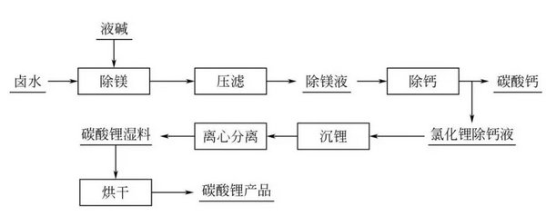 常見鹵水制備碳酸鋰的流程如下圖所示。鹵水中主要的成分為LiCl、MgCl2、KCl、Na+以及少量的Ca2+、SO42-,常見工藝是通過液堿調pH除去鎂雜質,二氧化碳除鈣雜質;Na+、K+、SO42-則通過沉鋰過程中離心分離和洗滌來控制。