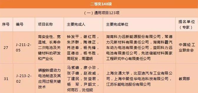 中國粉體網訊 2019年1月8日,2018年度國家最高科學技術獎勵大會在北京人民大會堂圓滿落幕,在此次大會上,劉永坦、錢七虎獲2018年度國家最高科學技術獎。小編注意到其中“國家科學技術進步二等獎”里有兩項是關于電池技術的,分別是《高安全性、寬溫域、長壽命二次電池及關鍵材料的研發和產業化》和《磷酸鐵鋰動力電池制造及其應用過程關鍵技術》。