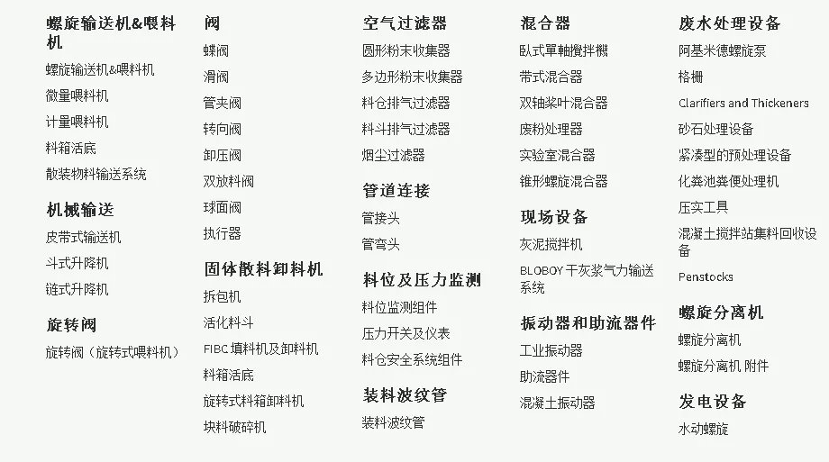 威埃姆集團是一個總部位于意大利的跨國集團,在世界上的超過40個國家擁有生產廠和貿易子公司。威埃姆集團的產品范圍非常廣泛,包括散裝固體物料輸送設備、濾塵、固-液分離、攪拌和振動設備,已經成為世界范圍內散裝固體物料處理技術和設備供應領域的行業領導。