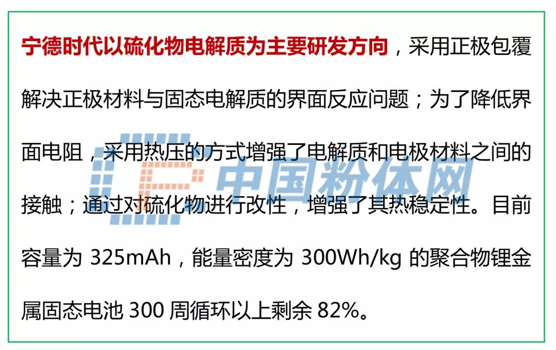寧德時代對全球固態電池企業進行調研后,確定了自身的發展方向。2016年10月,寧德時代新能源柳娜博士介紹了寧德時代在聚合物固態鋰金屬電池、硫化物固態電池領域的布局和研發路徑。