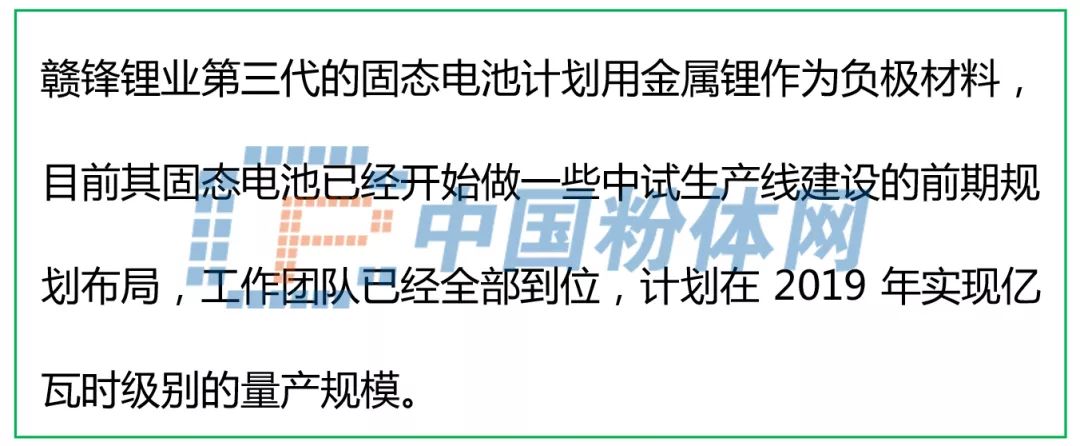 2017年贛鋒鋰業通過引進寧波材料所的許曉雄博士團隊,正式切入到固態電池板塊,實驗室的技術已經取得突破,計劃投資2.5億去做一條中試生產線,規模在億瓦時級以上,6億瓦時的動力電池生產線未來著重跟固態電池做匹配。
