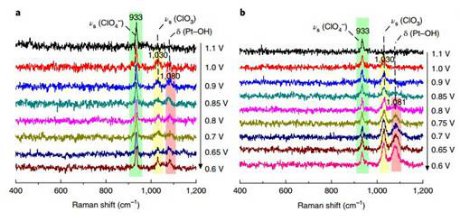 單晶電極表面ORR過程的原位拉曼光譜圖