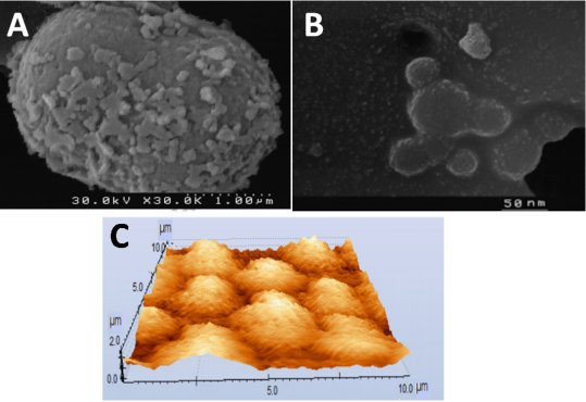 圖3 CuO納米粒子的(A) SEM、(B) TEM、(C)AFM圖[3]。