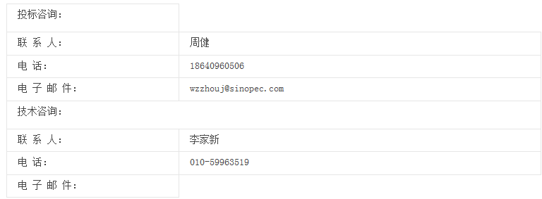 七、技術(shù)方面的問題請咨詢技術(shù)負責人(如有任何重要實質(zhì)性問題,請發(fā)郵件至wzzhouj@sinopec.com),澄清內(nèi)容以郵件或招標平臺發(fā)布的澄清文件為準。注冊、報名、交款、下載招標文件的問題請咨詢服務電話4008198786。