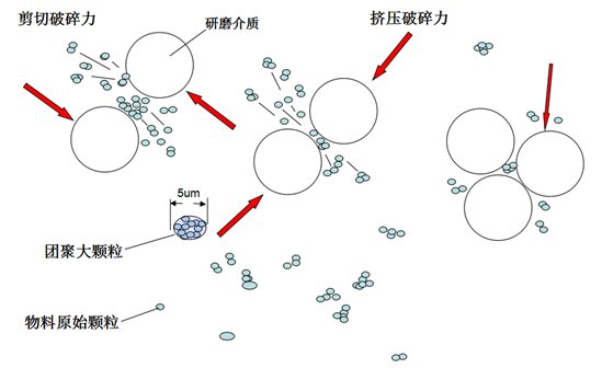 砂磨機(jī)的工作原理是利用泵將預(yù)先在漿料桶內(nèi)經(jīng)高速攪拌混合的漿料輸入密閉的研磨腔體內(nèi),與高速轉(zhuǎn)動(dòng)的研磨介質(zhì)接觸,從而使物料中的固體微粒和研磨介質(zhì)相互間產(chǎn)生更加強(qiáng)烈的碰撞、摩擦和剪切作用,達(dá)到加快磨細(xì)微粒和分散聚集體的目的。從研磨腔體內(nèi)流出的漿料回到漿料桶,再次重復(fù)前述分散過(guò)程。經(jīng)過(guò)多次循環(huán),達(dá)到要求的細(xì)度和很窄的粒度分布范圍。