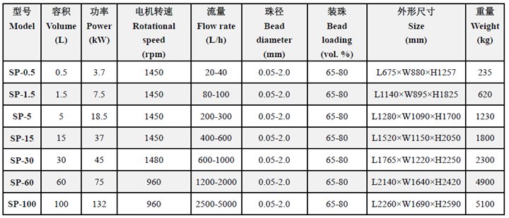 經(jīng)過(guò)SP系列產(chǎn)品高效研磨的物料粒徑可以達(dá)到0.1-2.0mm,可實(shí)現(xiàn)納米級(jí)別的超細(xì)研磨。該系列各型號(hào)相關(guān)參數(shù)如下圖所示: