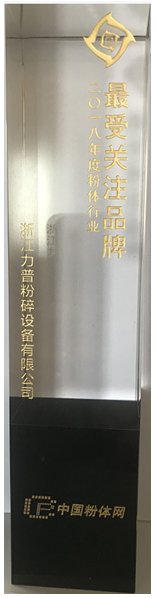 中國粉體網(wǎng)訊 日前,2018粉體行業(yè)年度獎(jiǎng)項(xiàng)評(píng)選揭曉,國家高新技術(shù)企業(yè)、中國粉碎技術(shù)領(lǐng)航者——浙江力普粉碎設(shè)備有限公司榮獲“最受關(guān)注品牌”稱號(hào)。“粉體行業(yè)年度獎(jiǎng)”是由中國粉體網(wǎng)聯(lián)合北京粉體技術(shù)協(xié)會(huì)于2013年共同發(fā)起,旨在表彰當(dāng)年度受用戶關(guān)注高、業(yè)內(nèi)暢銷的產(chǎn)品和行業(yè)品牌。它依托于粉體行業(yè)大數(shù)據(jù)資源,真實(shí)反映一年來粉體行業(yè)相關(guān)產(chǎn)品的活躍度及市場(chǎng)關(guān)注度,旨在推動(dòng)行業(yè)的發(fā)展。