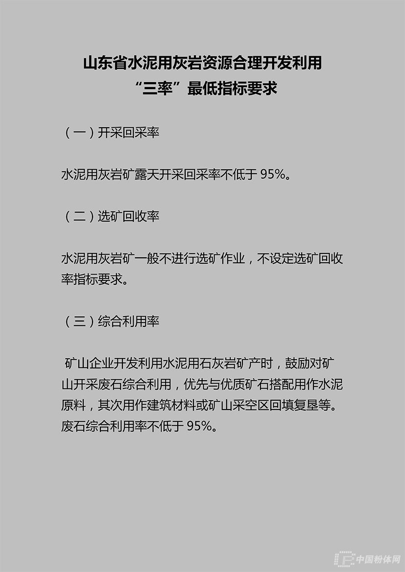 [導讀]  2019年4月16日,山東省自然資源廳發布公告,提出山東省石墨、水泥用灰巖、耐火黏土、金剛石、巖鹽、冶金用白云巖、長石等7種礦產資源合理開發利用“三率”最低指標要求。
