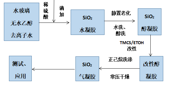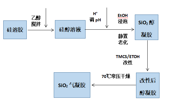 TEOS為原料制備二氧化硅氣凝膠流程圖
