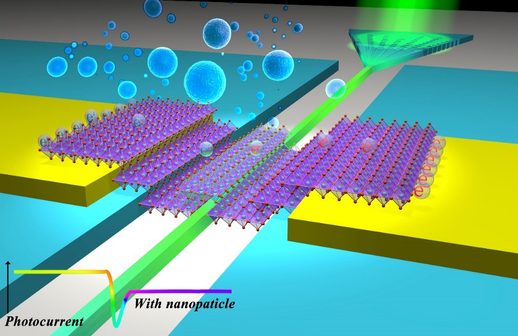 針對這些問題,哈爾濱工業(yè)大學(xué)(深圳)宋清海團(tuán)隊(duì)充分利用甲基銨三鹵化鉛(MAPbX3)鈣鈦礦的優(yōu)秀光電響應(yīng)能力,將鈣鈦礦光電探測器與氮化硅波導(dǎo)相結(jié)合,利用新型鹵化鉛鈣鈦礦和氮化硅波導(dǎo)制備了一種集成光電探測器,并展示了它們在片上集成光學(xué)傳感器中的潛力。研究人員使用了簡便易得的激光二極管入射光源,結(jié)合鈣鈦礦氮化硅波導(dǎo)集成光電探測器,成功測量了半徑約為70 nm的單個(gè)聚合物小球。器件通過將鹵化鉛鈣鈦礦納米片集成到Si3N4波導(dǎo)上并結(jié)合適宜的封裝,實(shí)現(xiàn)了鹵化鉛鈣鈦礦在極性溶液中測量納米級物體的突破,從而可將其用作復(fù)雜環(huán)境下的光學(xué)傳感器。與傳統(tǒng)的光電探測器件通過采集空間光信號從而實(shí)現(xiàn)光電探測所不同,該器件依靠的是集成波導(dǎo)倏逝波傳感,這種片上集成鈣鈦礦光電探測器的外量子效率可以高達(dá)0.2922 AW-1,證明了該器件性能與非集成類鈣鈦礦光電探測器一樣好,與此同時(shí)片上集成結(jié)構(gòu)體系使本器件擁有了檢測波導(dǎo)中光信號的微小變化的獨(dú)特能力。實(shí)驗(yàn)中通過光電流的實(shí)時(shí)變化簡單地解決了半徑小至70-80nm的納米級物體的實(shí)時(shí)探測問題。由于光電探測器是片上集成的,因此該傳感系統(tǒng)僅需要常規(guī)的半導(dǎo)體激光二極管和已經(jīng)有完善的研究的光纖耦合系統(tǒng)支持就可以順利工作,極大的降低了設(shè)備成本并有助于便攜性的提高,能夠協(xié)助解決納米尺度物體的光電傳感器的長期存在的設(shè)備要求繁瑣檢測成本高昂的問題。值得注意的是,通過用鈣鈦礦二維材料異質(zhì)結(jié)構(gòu)代替鈣鈦礦納米片,可以進(jìn)一步改善片上集成傳感器的性能,特別是對于高溫度和高濕度條件下的應(yīng)用,具有極大的開發(fā)潛力和性能提升空間,本研究中提出的片上集成鈣鈦礦光學(xué)傳感器能夠在未來的商用終端傳感器和其他便攜式設(shè)備中發(fā)揮重要作用。