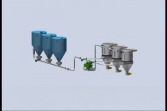 低壓壓送式系統,動力源多采用羅茨風機,設在系統的進料端。物料與空氣混合加速后被壓送至末端的收料設備或緩存倉內,而壓送的空氣則經過倉頂除塵器凈化后排入大氣。