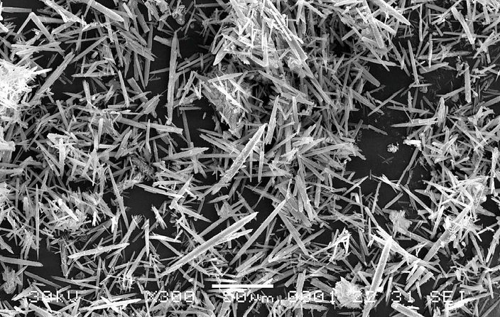 碳酸鈣晶須是一種新型針狀材料,因其結晶形式為單晶,晶體內部幾乎無缺陷,具有強度高、模量高、耐熱與隔熱性好等優良特性,與塑料復合時和基體樹脂的相容性好,可以改善制品的加工性能,提高力學性能,所以廣泛應用于汽車、塑料、電氣部件制造、高光潔度結構部件制造等領域。碳酸鈣晶須有方解石、文石和球霞石3種類型,目前大量使用和正在研究的碳酸鈣晶須幾乎都是方解石型,而文石型、球霞石型制品很少。