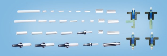 包括MT插芯及陶瓷導針、陶瓷插芯、陶瓷套筒、非標插芯、非標套筒、快速連接器用纖插芯、激光器用帶纖插芯、光纖到戶陶瓷快接方案、光電子封裝用部件。