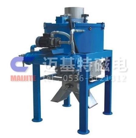 磁選是利用石英和含鐵礦物磁性的不同而進行分選的一種方法,可以最大限度地除去包括連生體在內的赤鐵礦、褐鐵礦和黑云母等弱磁性雜質礦物。磁選的次數和磁場的強度對磁選除鐵有顯著影響,隨磁選次數和磁場強度的增加,除鐵量顯著增加。尤其是近年高梯度強磁場磁選機的發明,對非金屬礦物的提純有顯著效果。
