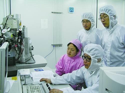 顧長志(前排右)課題組正在進行石墨烯納米器件加工(項目組圖)