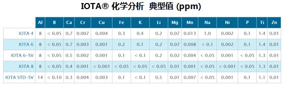 用于半導體級應用的矽比科高純度石英產品組合包括IOTA 4、IOTA 6、IOTA 6-SV、IOTA 8 和 IOTA STD-SV。這些產品的堿含量低,可確保熔融石英具有高粘度, 從而提供高軟化點和低結晶率特性,延長零部件壽命,降低總體擁有成本。 穩定的低硼 (B) 和微量過渡金屬有助于在晶體生長和晶片加工過程中保持硅的純度。